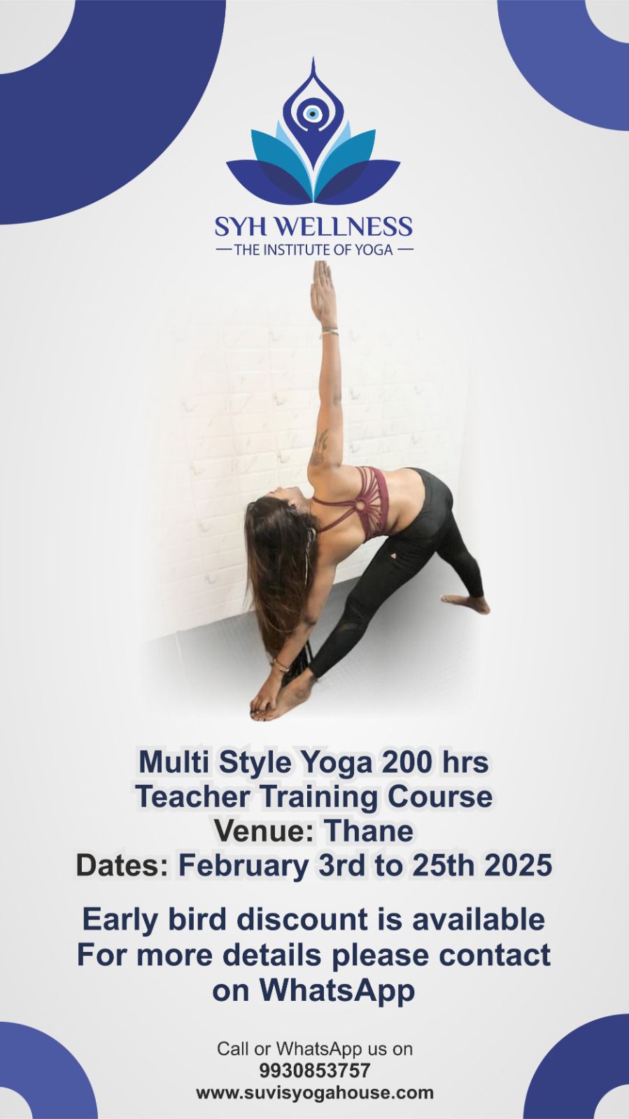 Call or whatsapp us on : 9930 853 757 to Get your seats booked for being a Certified Yoga Teacher